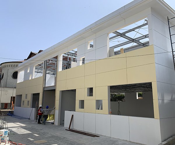 Construcción de edificio de 02 pisos íntegramente en acero estructural.Dentro de los alcances se encontraban la demolición, el movimiento de tierras, excavaciones, zapatas, losas, estructuras metálicas, mezanine metálico, todas las paredes externas en SUPERBOARD o planchas de fibrocemento, interiores drywaal de yeso, ventanas proyectantes con vidrio templado, puerta de cedro, sistema eléctrico, sistema de ventilación, sistemas de iluminación general.