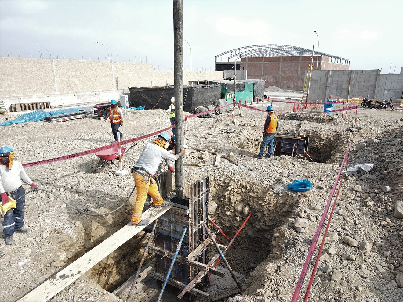 Construimos 01 nave de 2,000 m2 para su planta de producción de cefalópodos y pescados. Primero ejecutamos la cimentación con zapatas y pedestales.
